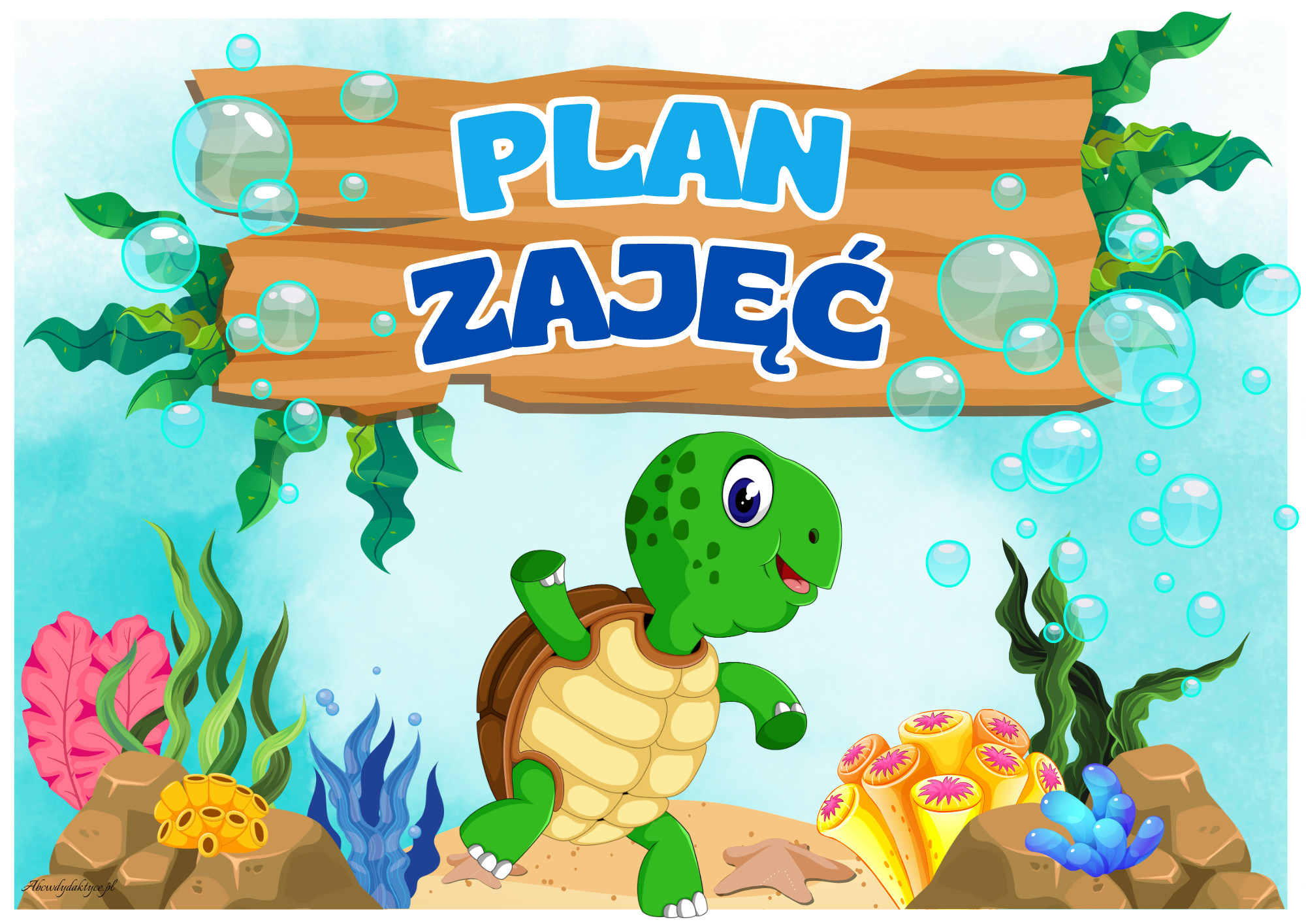 🐢 Tabliczki organizacyjne: Grupa ŻÓŁWIKI, Nasza grupa, Informacje, Informacje dla rodziców, Plan dnia, Plan zajęć, Nasze prace, Kodeks Żółwików.